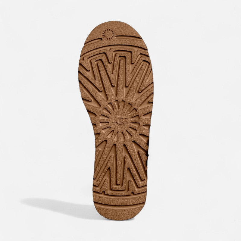 - Webbing heel strap, The UGG® Logo patch, Oversized padded tongue