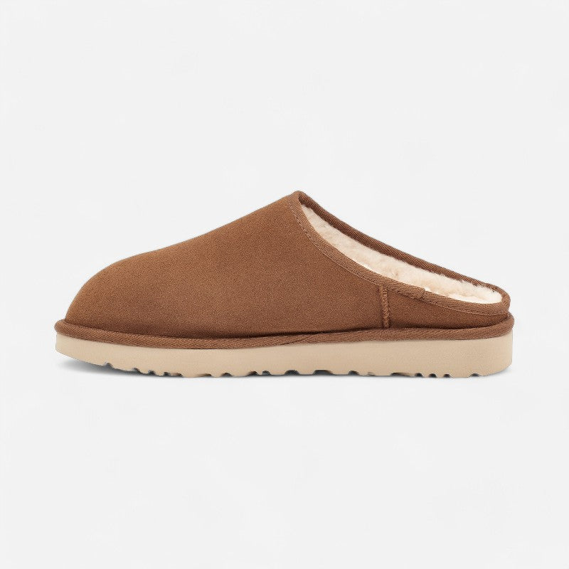 An effortless take on our icon with the same rich suede and soft sheepskin, our new Classic Slip-On offers easy entry and a laidback look. Lined in our signature UGGplushâ„¢ blend of upcycled wool and plant-based TENCELâ„¢ Lyocell, it's finished with an ultra-lightweight outsole for grip and cushioning.