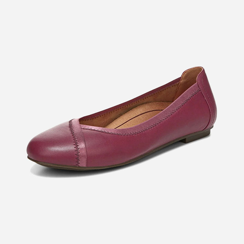 The classic ballet flat gets an upgrade, with a soft elastic top line accented by delicate stitching and crossover detail above the toe cap.