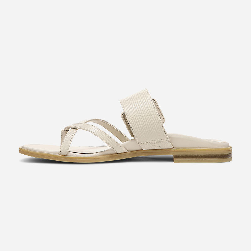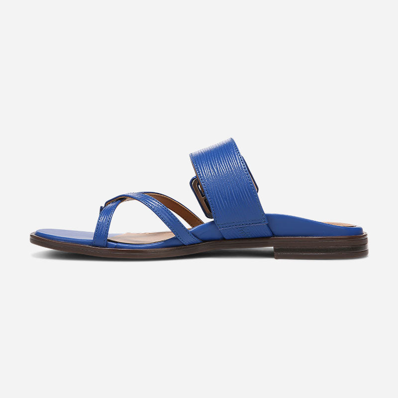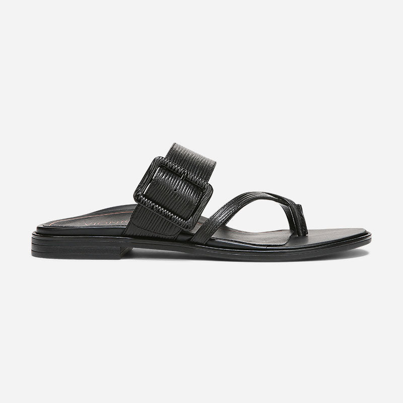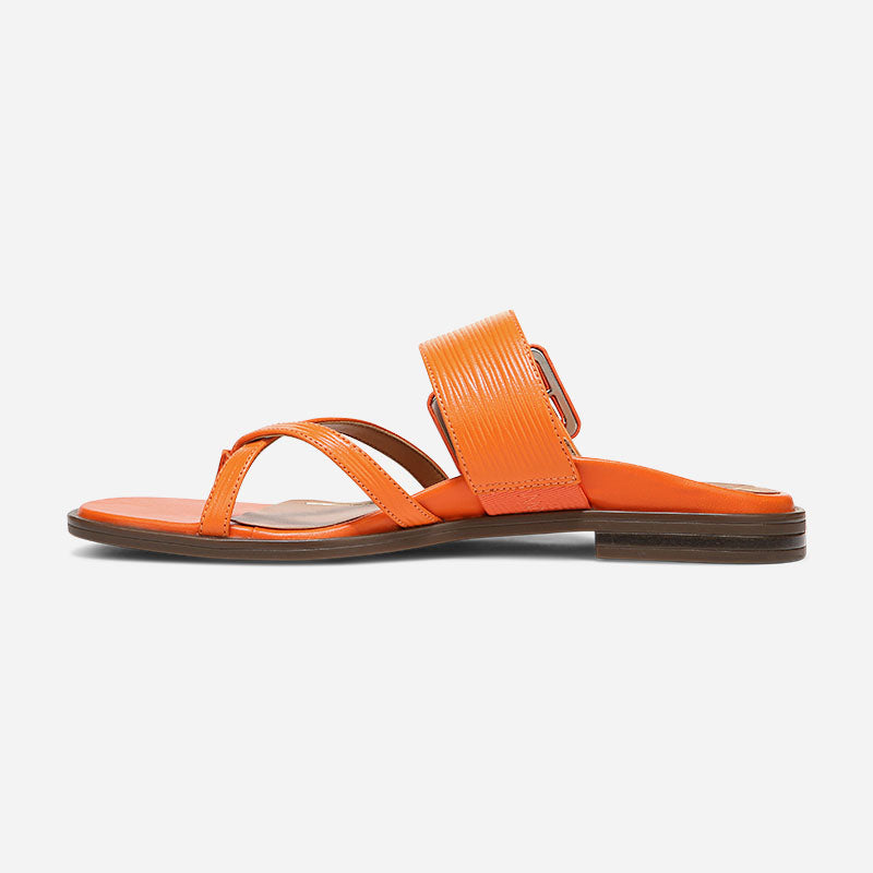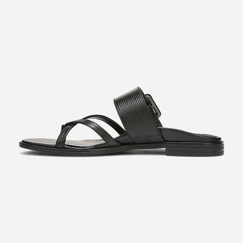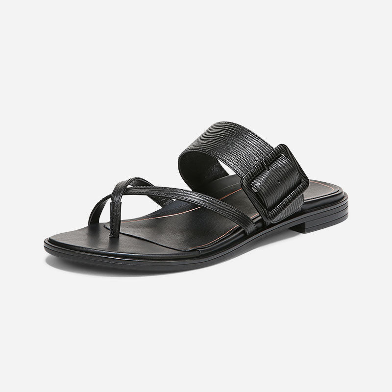 A versatile sandal with sophisticated crisscross straps, bold buckle details and an adjustable strap.