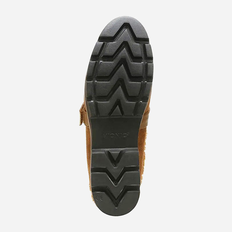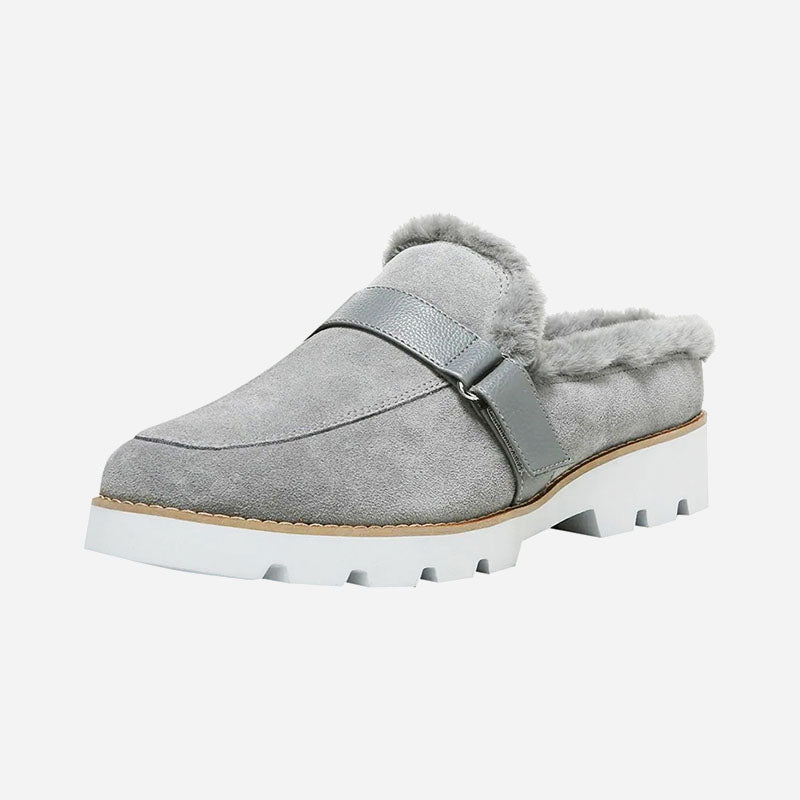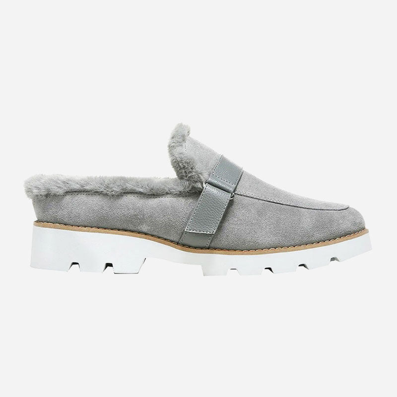 Lug bottom, suede top, shearling lining and an adjustable mid-strap: It's a winning combination we like to call, "slide heaven."