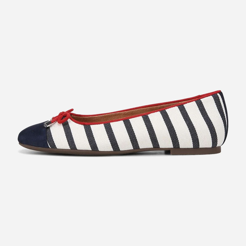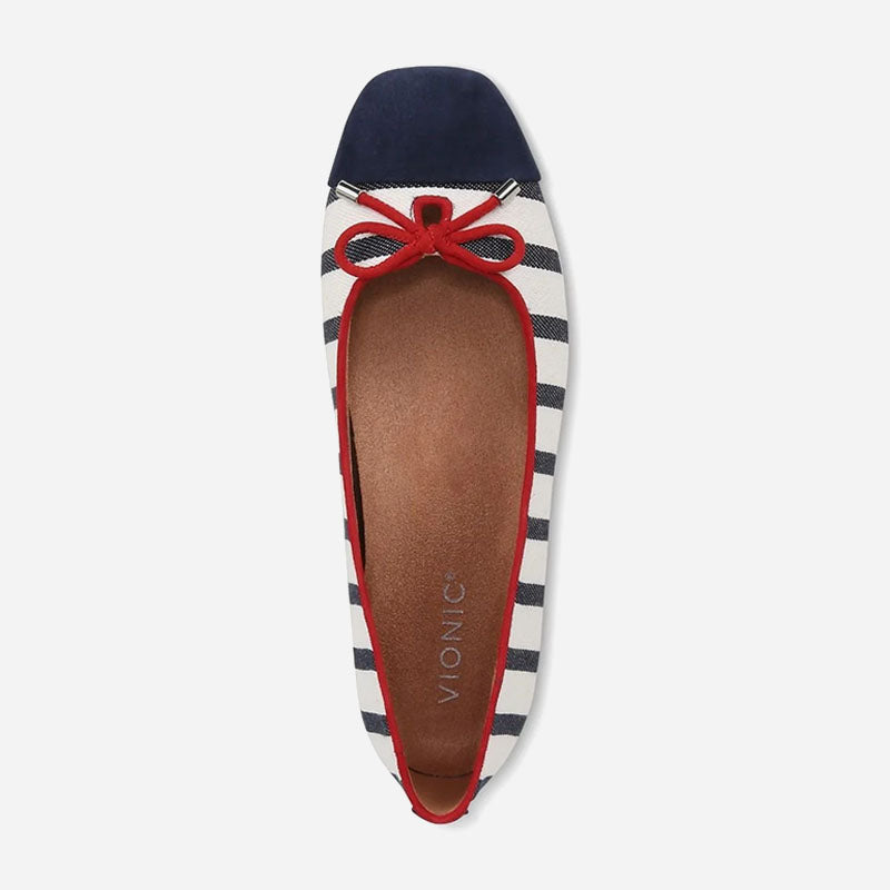 Complement your attire with a graceful touch in the Klara ballet flat from Vionic. Designed with exclusive alignment technology to provide better balance, this slip-on is designed with trendy square toe and bow detail for enhanced appeal. Its VIO MOTION Technology footbed featuring contoured arch support, shock-absorbing padding and deep heel cup, lends maximum stability and forefoot flexibility. This slip-on ensures full underfoot contact to minimize pressure as you take each step and relieve heel pain caused by plantar fasciitis or Achilles tendonitis.