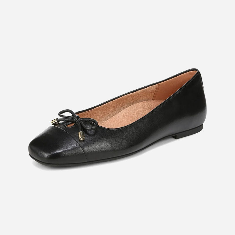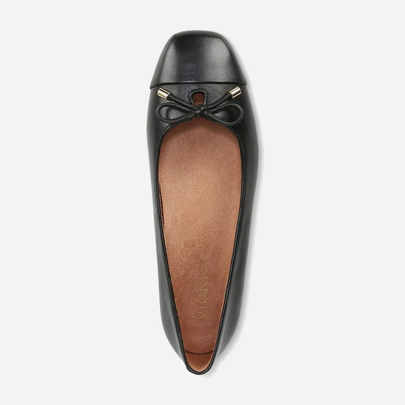 Complement your attire with a graceful touch in the Klara ballet flat from Vionic. Designed with exclusive alignment technology to provide better balance, this slip-on is designed with trendy square toe and bow detail for enhanced appeal. Its VIO MOTION Technology footbed featuring contoured arch support, shock-absorbing padding and deep heel cup, lends maximum stability and forefoot flexibility. This slip-on ensures full underfoot contact to minimize pressure as you take each step and relieve heel pain caused by plantar fasciitis or Achilles tendonitis.