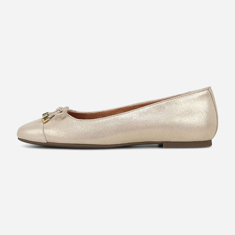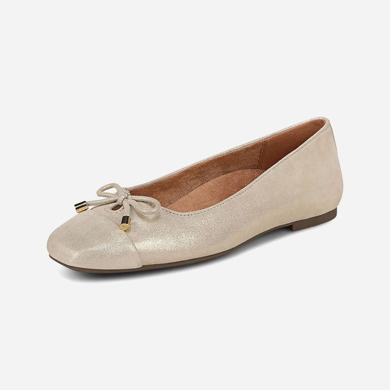 Complement your attire with a graceful touch in the Klara ballet flat from Vionic. Designed with exclusive alignment technology to provide better balance, this slip-on is designed with trendy square toe and bow detail for enhanced appeal. Its VIO MOTION Technology footbed featuring contoured arch support, shock-absorbing padding and deep heel cup, lends maximum stability and forefoot flexibility. This slip-on ensures full underfoot contact to minimize pressure as you take each step and relieve heel pain caused by plantar fasciitis or Achilles tendonitis.