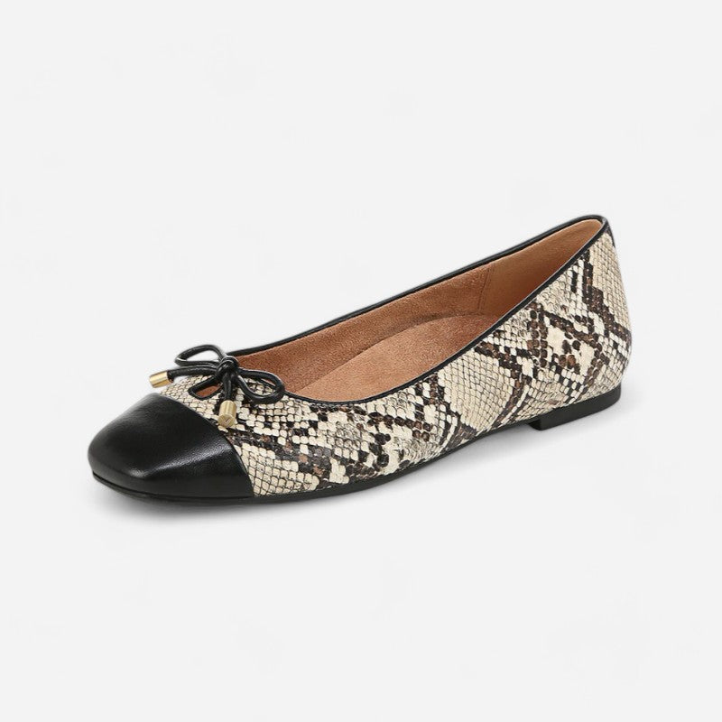 Complement your attire with a graceful touch in the Klara ballet flat from Vionic. Designed with exclusive alignment technology to provide better balance, this slip-on is designed with trendy square toe and bow detail for enhanced appeal. Its VIO MOTION Technology footbed featuring contoured arch support, shock-absorbing padding and deep heel cup, lends maximum stability and forefoot flexibility. This slip-on ensures full underfoot contact to minimize pressure as you take each step and relieve heel pain caused by plantar fasciitis or Achilles tendonitis.