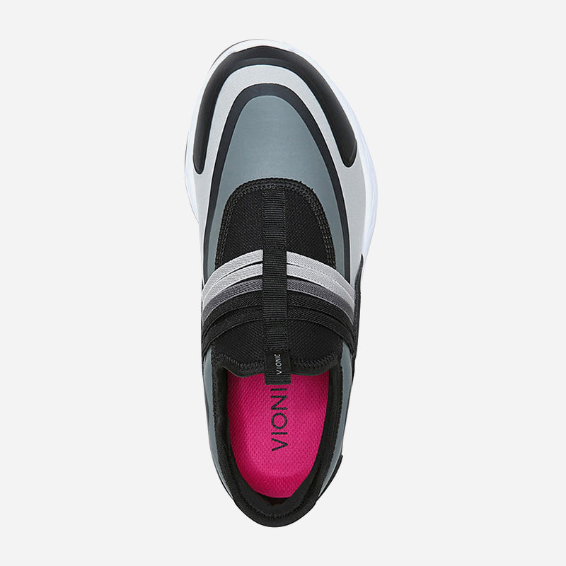 Contrasting colors add fun to this lightweight slip-on sneaker with layered mesh uppers and an adjustable pull for easy on/off.
