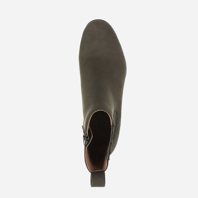 - Side zipper offers slip-on sensibility and a secure fit.