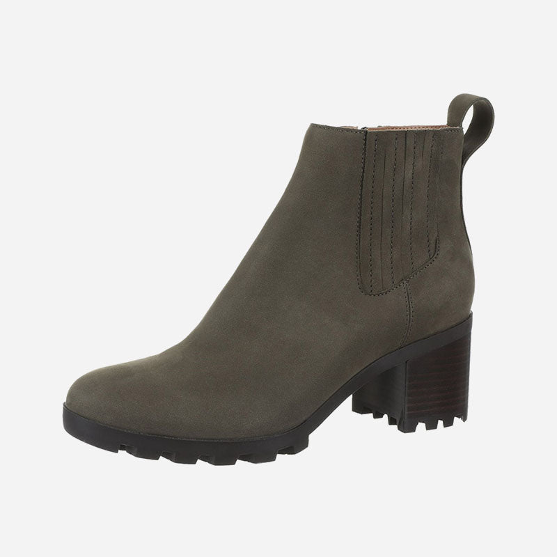 This waterproof nubuck short boot is tall on style with on-trend lug soles, a comfy block heel and easy side zip.
