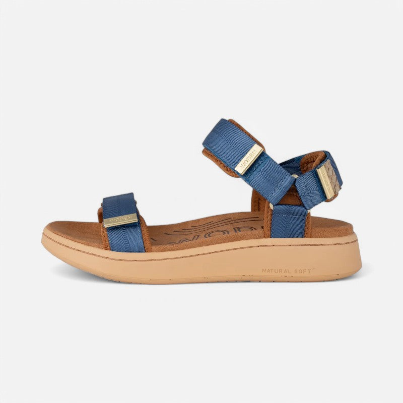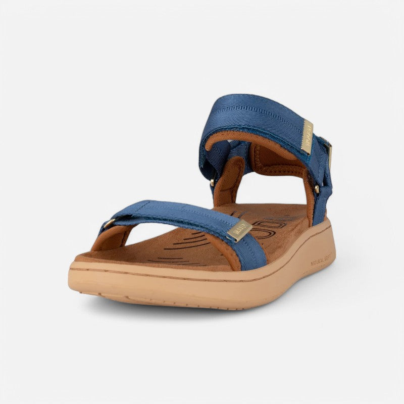 Line is a classy and comfortable sandal made of textile and rubber, with fish leather details for a stylish and comfortable look. It provides the best fit for a comfortable walking experience due to its adjustable straps, soft materials, and protective pads.