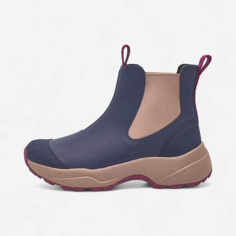 Siri is a durable and waterproof boot made of 70% natural rubber with an elegant anti-slip design. In addition, the boot is crafted with 30% recycled rubber and has beautiful fish leather details on the heel. A distinctive track sole completes the boot for great comfort.